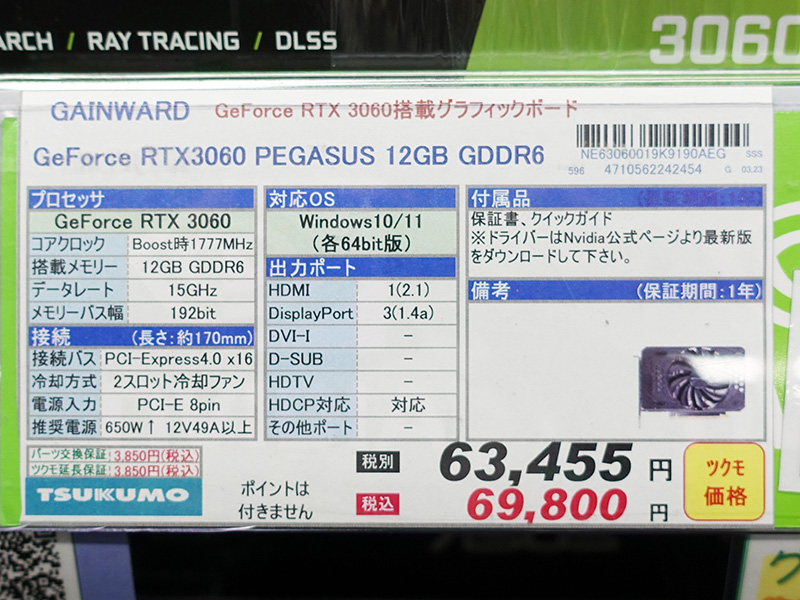 シングルファン仕様のGeForce RTX 3060/3050がGainwardから(4/7)