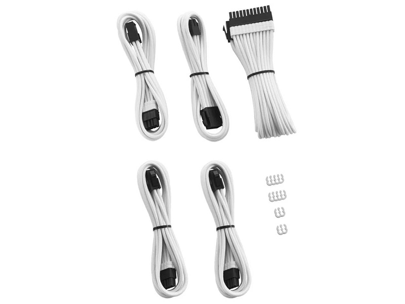 CableModの白い電源延長ケーブルセット、スリーブ装飾済み