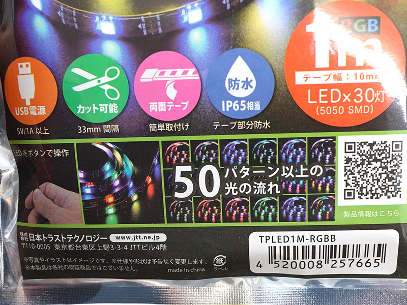 好きな長さに切って使えるUSB接続のRGB LEDテープ、発光パターンは50以上