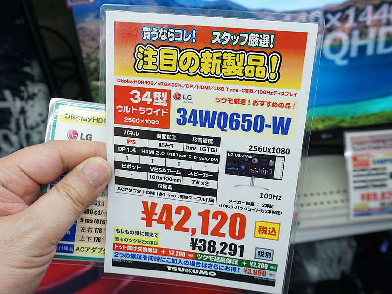 100Hz駆動/IPSパネル採用の34インチモニター「34WQ650-W」がLGから