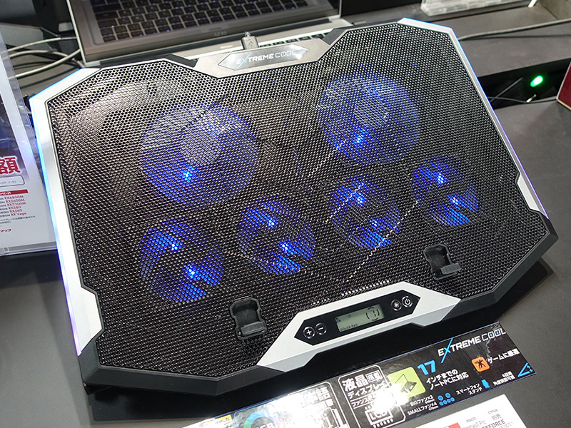 6基のファンを備えた光るノートPCスタンド、前面に液晶パネル搭載