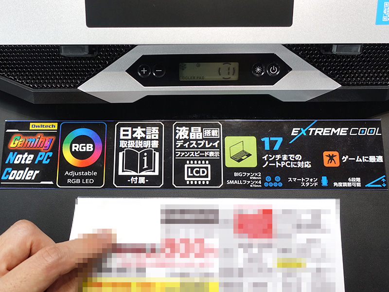 6基のファンを備えた光るノートPCスタンド、前面に液晶パネル搭載