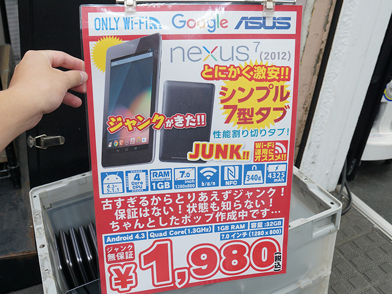 懐かしのAndroidタブレット「Nexus 7(2012)」が1,980円!ジャンク品が大量入荷