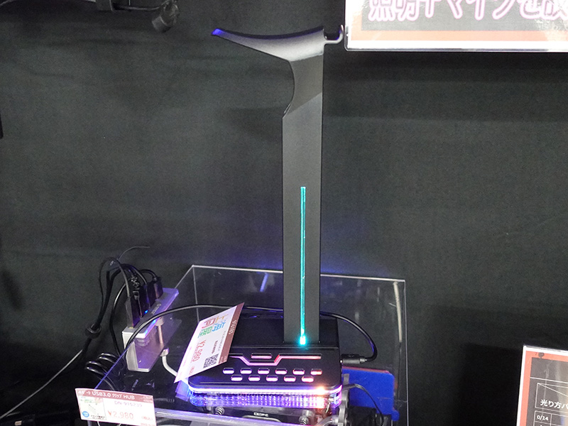 USBハブ機能付きの光るヘッドホンスタンドが上海問屋から、実売2,980円(2/7)