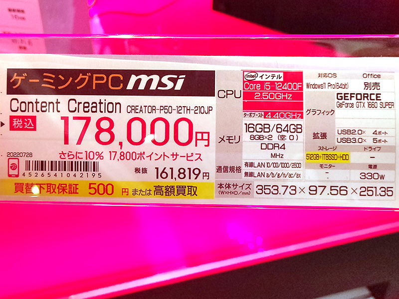 MSIの白いスリムタワーPC「Creator P50 12TH-210JP」が入荷、GeForce GTX 1660 SUPERを搭載