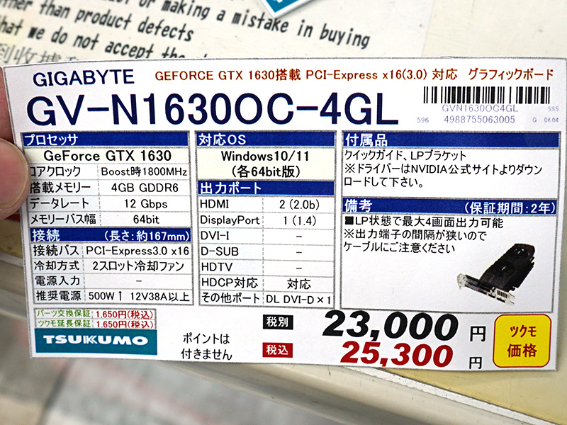 ロープロ/4画面対応のGeForce GTX 1630がGIGABYTEから