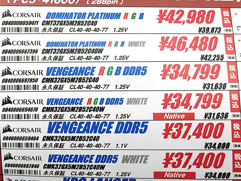 CORSAIR「VENGEANCE RGB DDR5」の16GB×2枚組が4製品
