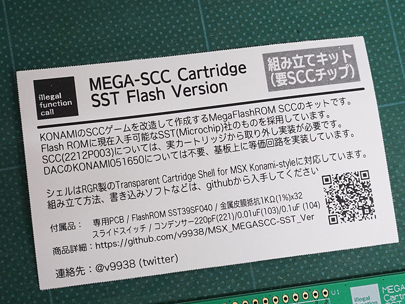 コナミのSCC音源を使って組み立てるMSX用カートリッジキット「MEGA-SCC Cartridge SST Flash Version」