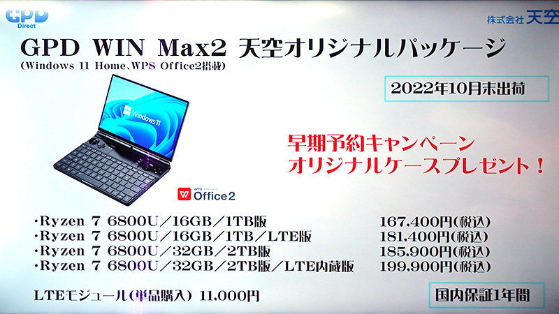 最新ゲームも遊べるハイエンド10.1型UMPC「GPD WIN Max2」の予約スタート