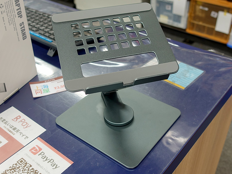 360度回転台座を備えたアルミ製タブレットスタンド、高さ調整も可能