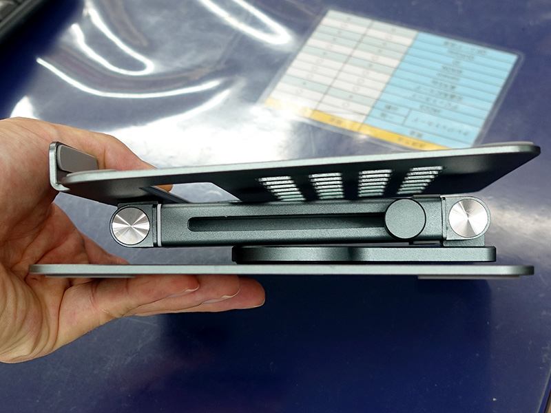 360度回転台座を備えたアルミ製タブレットスタンド、高さ調整も可能