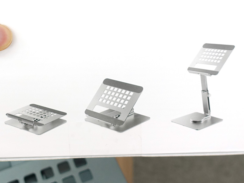 360度回転台座を備えたアルミ製タブレットスタンド、高さ調整も可能