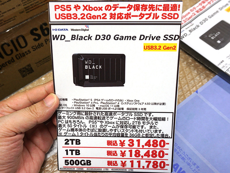 PS5やXbox One対応のポータブルSSD「WD_Black D30」が発売、500GB/1TB/2TBの3モデル