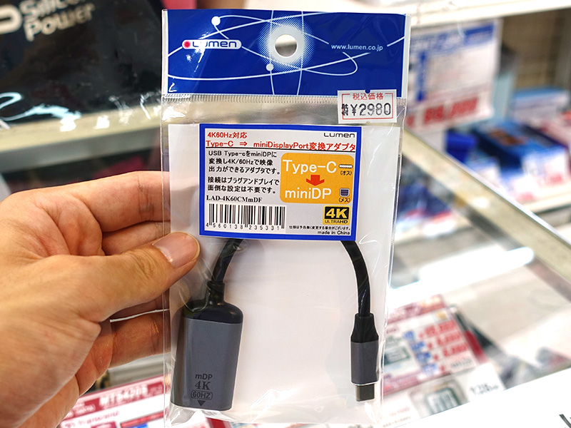 USB Type-C - Mini DisplayPort変換アダプタがルーメンから、価格は2,980円