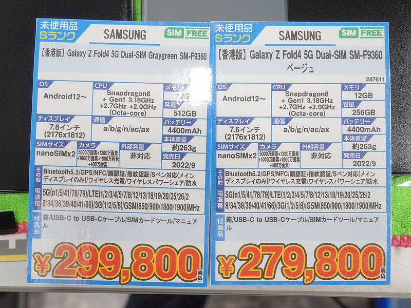 7.6型折りたたみスマホ「Galaxy Z Fold 4」が直輸入、512GBモデルは約30万円