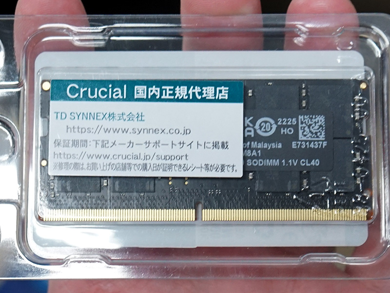 1枚で16GBのDDR5-4800 SO-DIMMがCrucialから