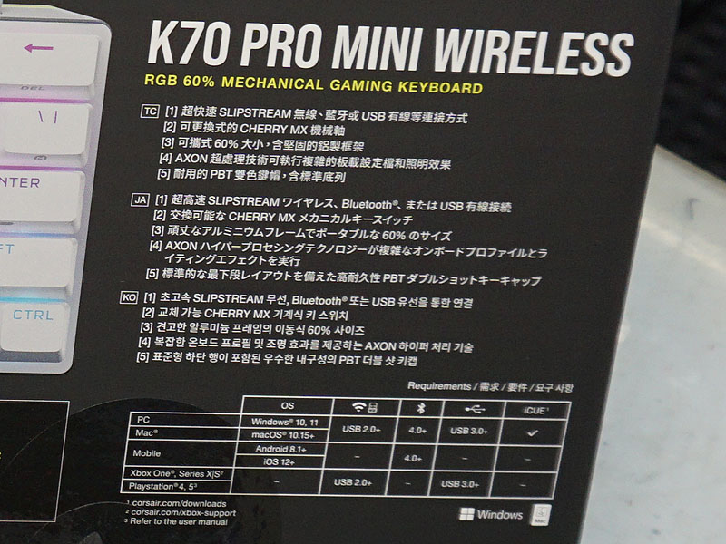 CORSAIRの60%キーボード「K70 PRO MINI WIRELESS」が発売、スイッチ交換にも対応