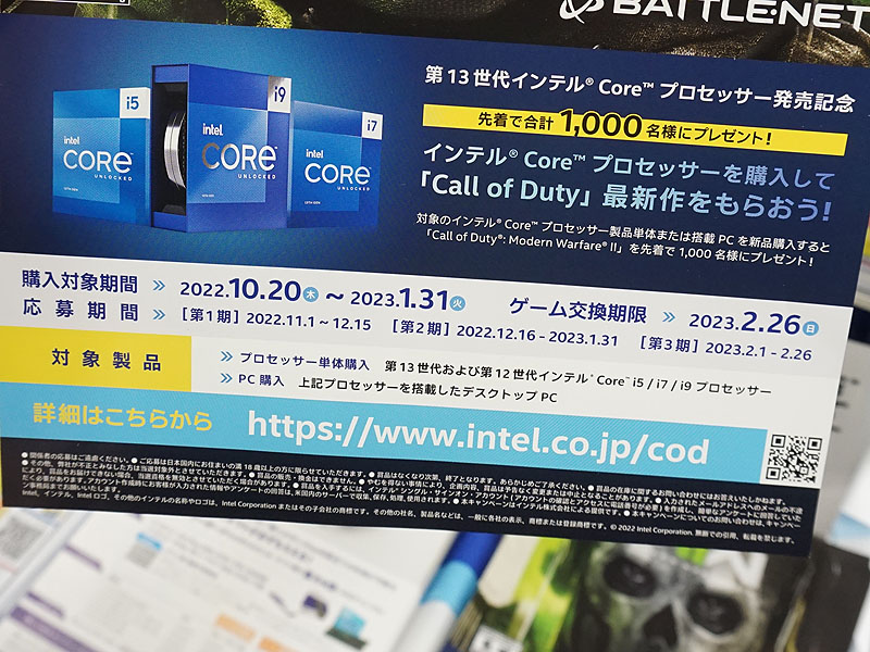 Intel第13世代Coreプロセッサーの販売スタート、Call of Dutyの先着プレゼントキャンペーンも(7/7)