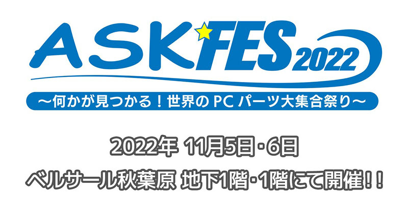 PCパーツの大規模イベント「ASK★FES 2022」が11月5日~6日に開催、場所はベルサール秋葉原