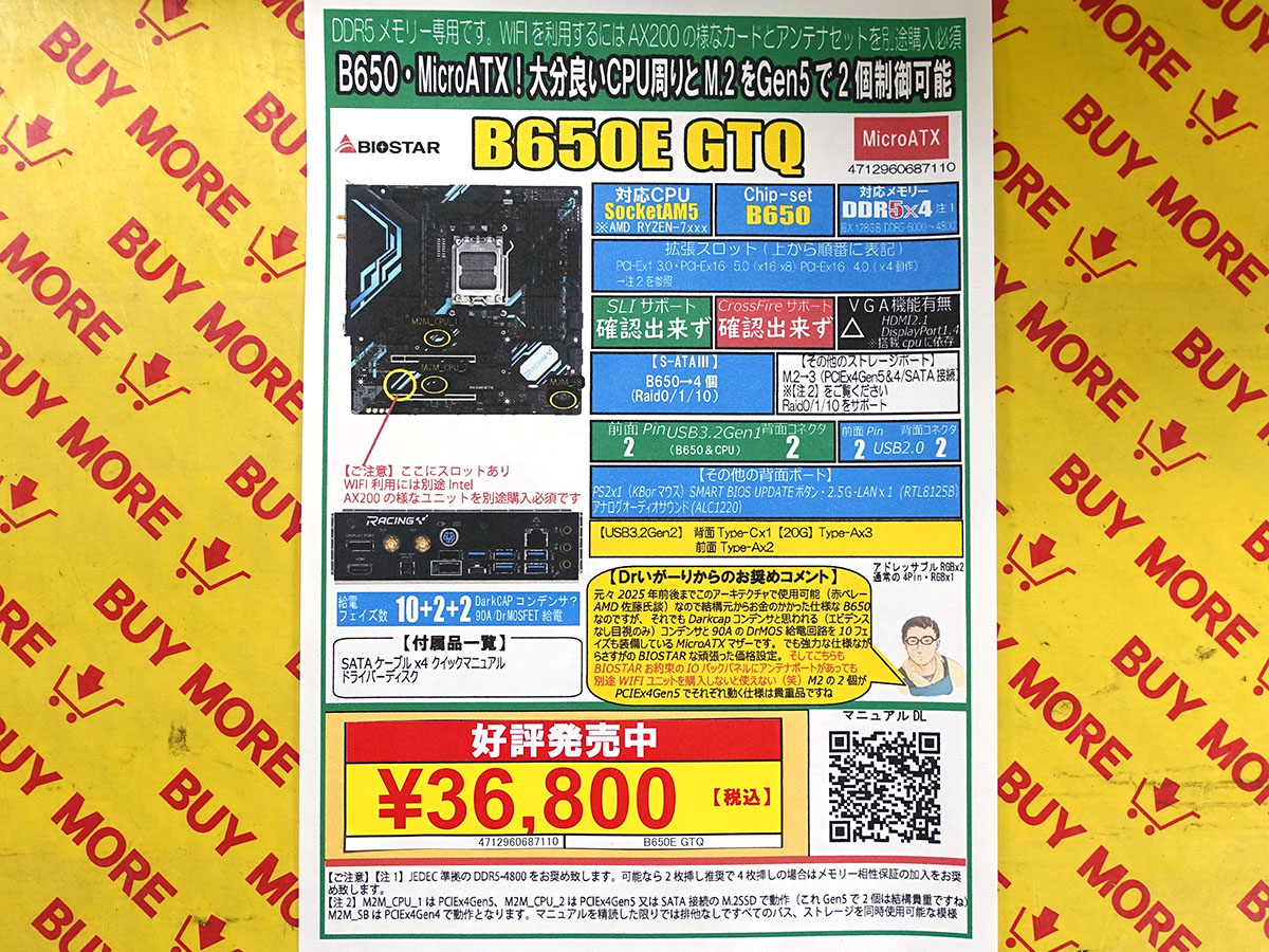 BIOSTARのRyzen 7000向けマザー「B650EGTQ」が入荷、2.5GbE LAN搭載