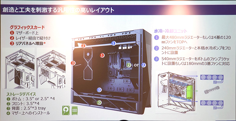 グラボ斜め配置の新型ケースや21GB/sの超高速SSD RAIDなど!SilverStoneイベントレポート、小学生が制作したランドセルPCも展示