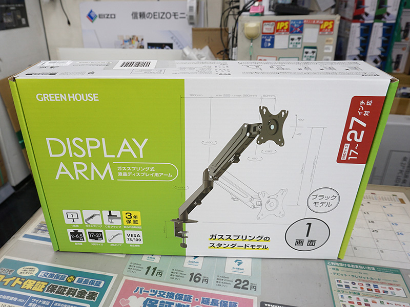 ガススプリング式の1画面用ディスプレイアームがグリーンハウスから