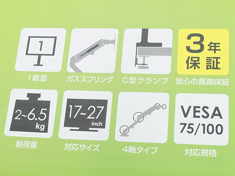 2画面対応のガススプリング式モニターアーム、価格は5,980円