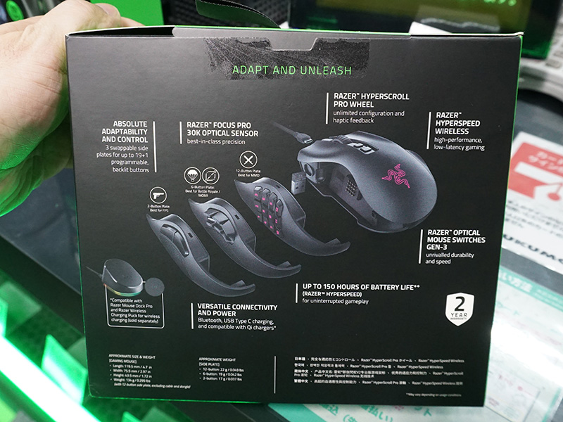 サイドボタンを変更できるゲーミングマウス「Naga Pro」がRazerから、3種のサイドプレート付き