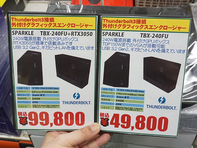 Thunderbolt 3接続の外付けGeForce RTX 3050が入荷、USBやLANポートを装備