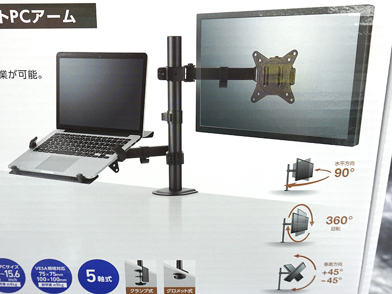 ノートPCとモニターが設置できるデュアルアームなど、エレコムのモニターアームが3種類