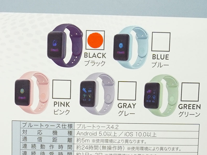 1,200円のスマートウォッチ「コローレ」があきばお~に入荷、カラーは5色