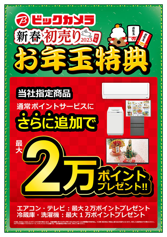 ビックカメラ、1月1日に「2023年福箱」を店頭販売。期間限定セールも