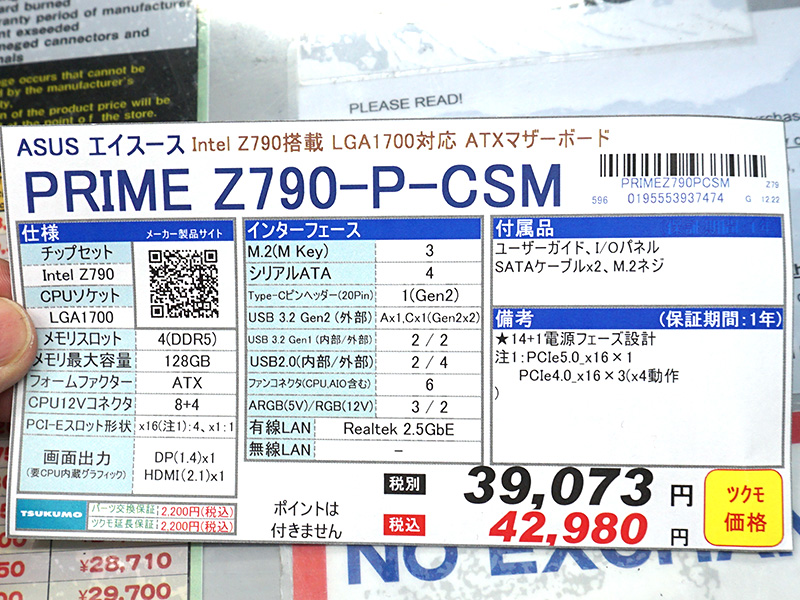 シンプルな作りのASUSマザー「PRIME Z790-P CSM」が入荷