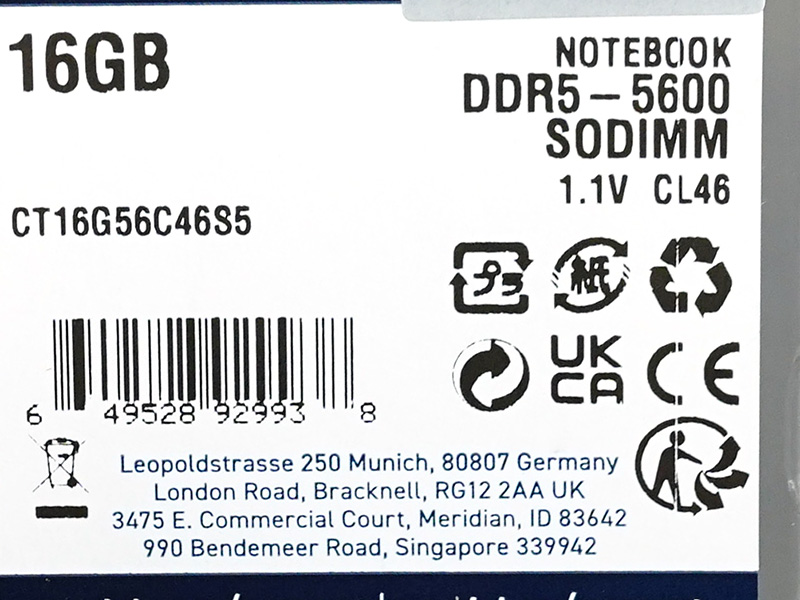 DDR5-5600動作の16GB DIMMとSO-DIMMがCrucialから