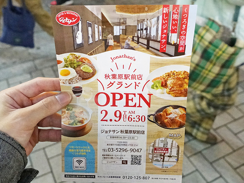 JR秋葉原駅電気街口前に「ジョナサン 秋葉原駅前店」が新規オープン