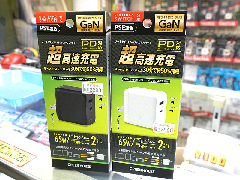 コンパクトな65W PD対応2ポートUSB充電、Nintendo Switch対応