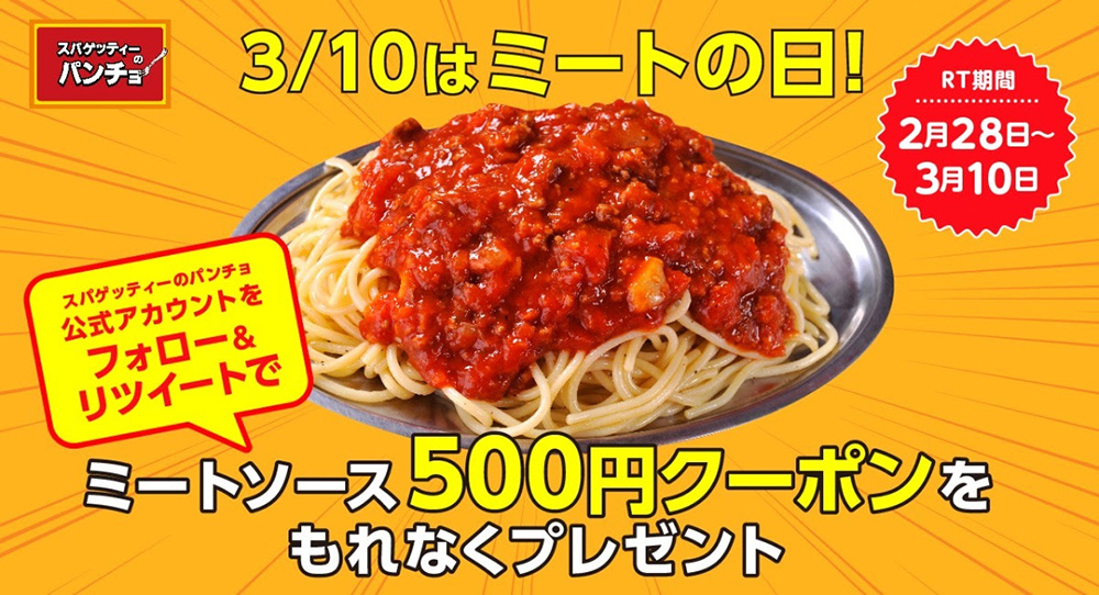 スパゲッティーのパンチョ「ミートの日」が今年も実施、“ミートソース”が全サイズ500円に!