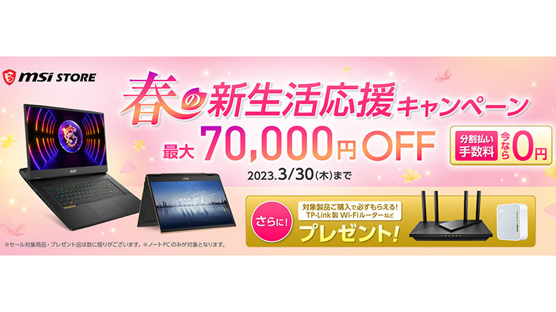 MSIストアにて「春の新生活応援キャンペーン」が30日まで開催、ゲーミングPCなど最大7万円引き