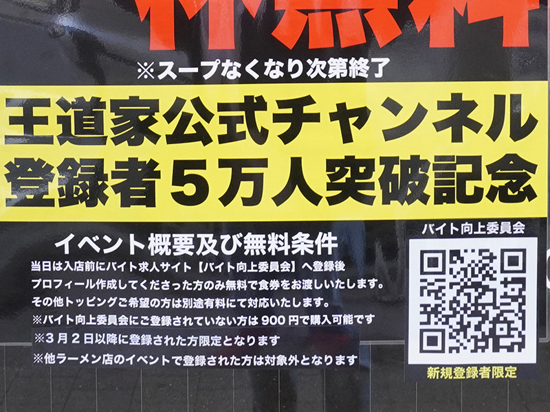 末広町駅近くの「IEKEI_TOKYO王道家直系」がラーメン中盛りを1杯無料提供、3月9日限定のイベント
