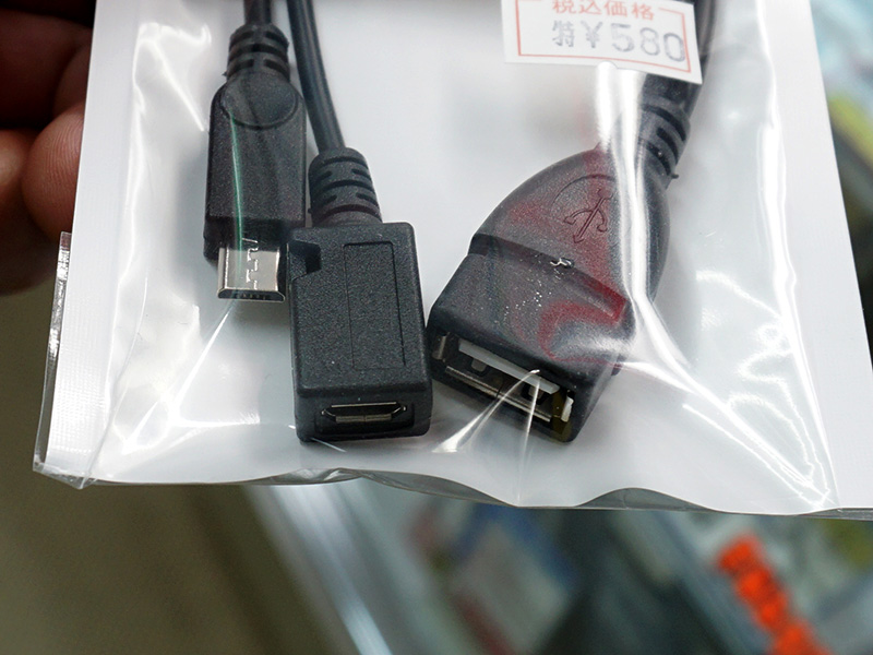 給電機能付きのUSB microUSBホストケーブル、長さは20cm