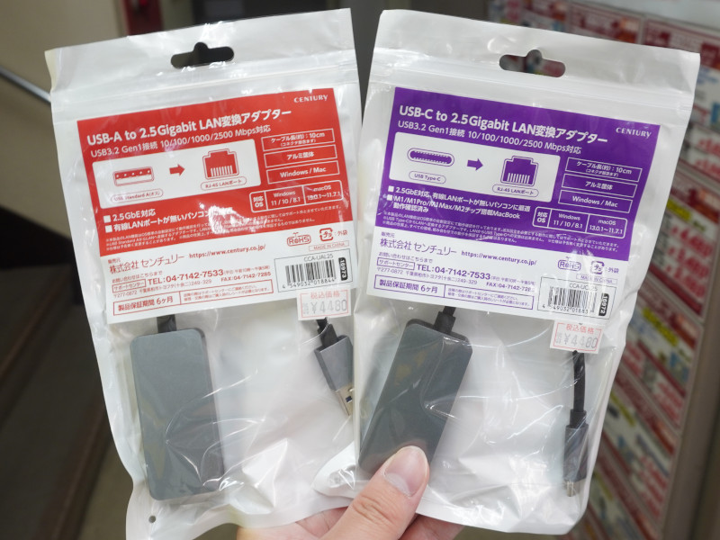USB Type-C接続の2.5GbE LANアダプタが入荷、アルミボディ採用