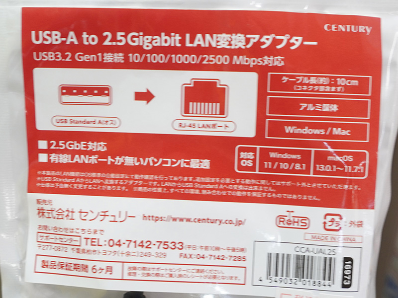Realtek製2.5GbEコントローラー採用のUSB LANアダプタ