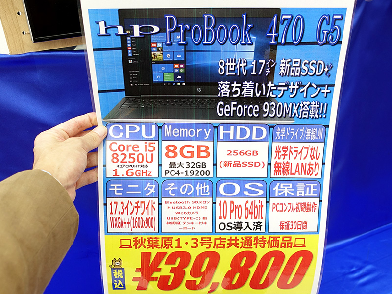 Core i5-8350U搭載の15.6インチノートが34,800円など、中古PCセール