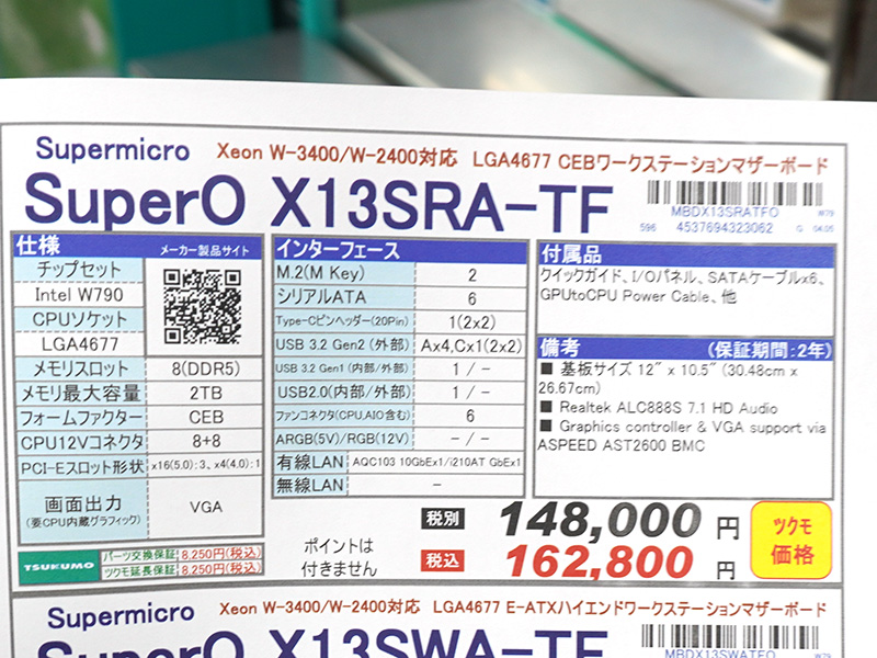 SupermicroのXeon W-3400/W-2400対応マザー「X13SRA-TF」が店頭入荷、最大2TBメモリ構成に対応