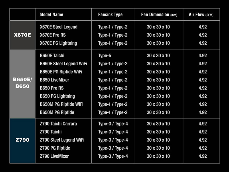 ASRock Z790/B650Eマザー向けのM.2 SSD用ヒートシンクが3種類、3cmファンを内蔵(3/3)