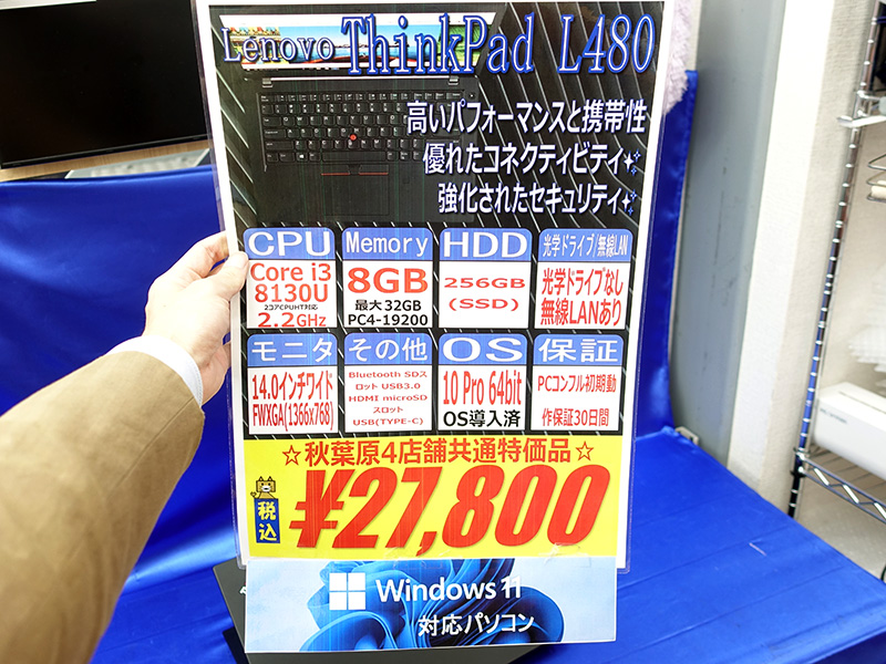 第8世代Core搭載の14インチノート「ThinkPad L480」が3万円切り!中古PCセール