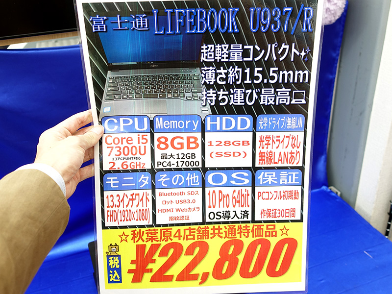 富士通の13.3インチ軽量ノート「LIFEBOOK U937/R」が22,800円など、中古PCセール