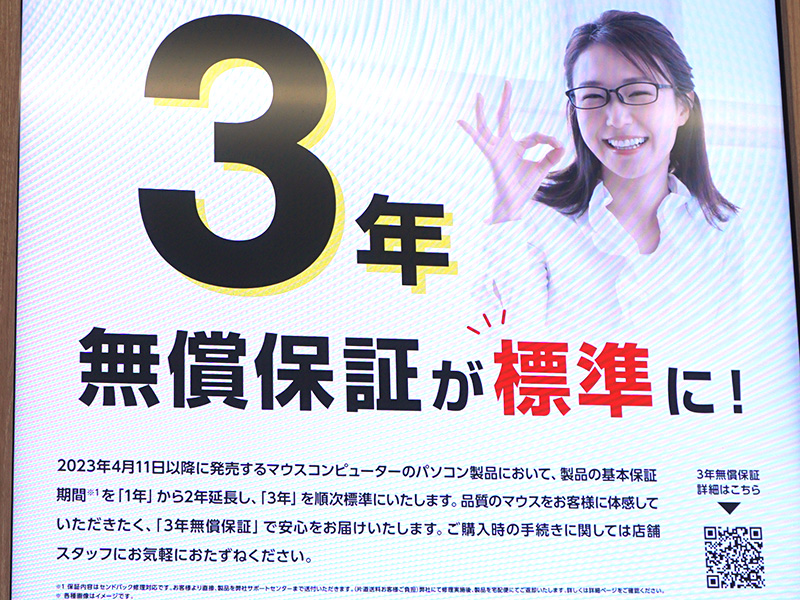 マウスコンピューター製PCの標準保証期間が3年に、製品型番も変更
