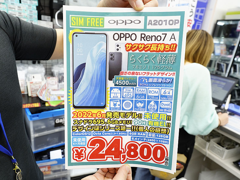 5G対応スマホ「OPPO Reno7 A」が24,800円!nanoSIM+eSIM対応の未使用品セール(1/5)