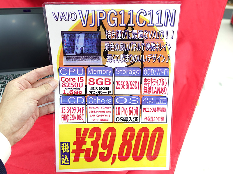 第8世代Core搭載の13.3インチVAIOノートがお得!PCコンフルで中古品セール